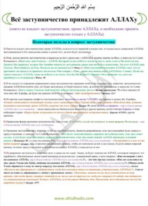 И довод на заступничество слово Его Всевышнего: «И они поклоняются помимо АЛЛАХа тому, что не навредит им и не принесет им пользы. И говорят: они наши заступники перед АЛЛАХом».