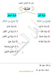 И когда ты узнал, если ширк (приобщение АЛЛАХу соучастника) смешается с поклонением, испортит его и сделает тщетными все деяния, и носитель его (мушрик) будет из вечно пребывающих в Огне, тогда ты узнал, что самое важное для тебя – изучение этого, и быть может, АЛЛАХ очистит тебя от этой сети.