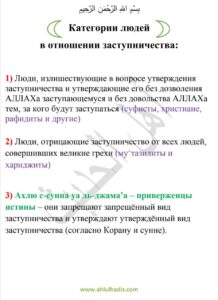 1) Запретное заступничество, – которое испрашивается у кого-то, помимо АЛЛАХа, в том, в чём не способен помочь никто, кроме АЛЛАХа.